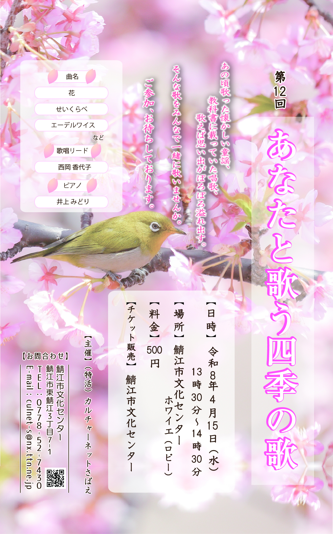 日時:令和8年2月23日(月・祝) 開場13:30 開演14:00 会
