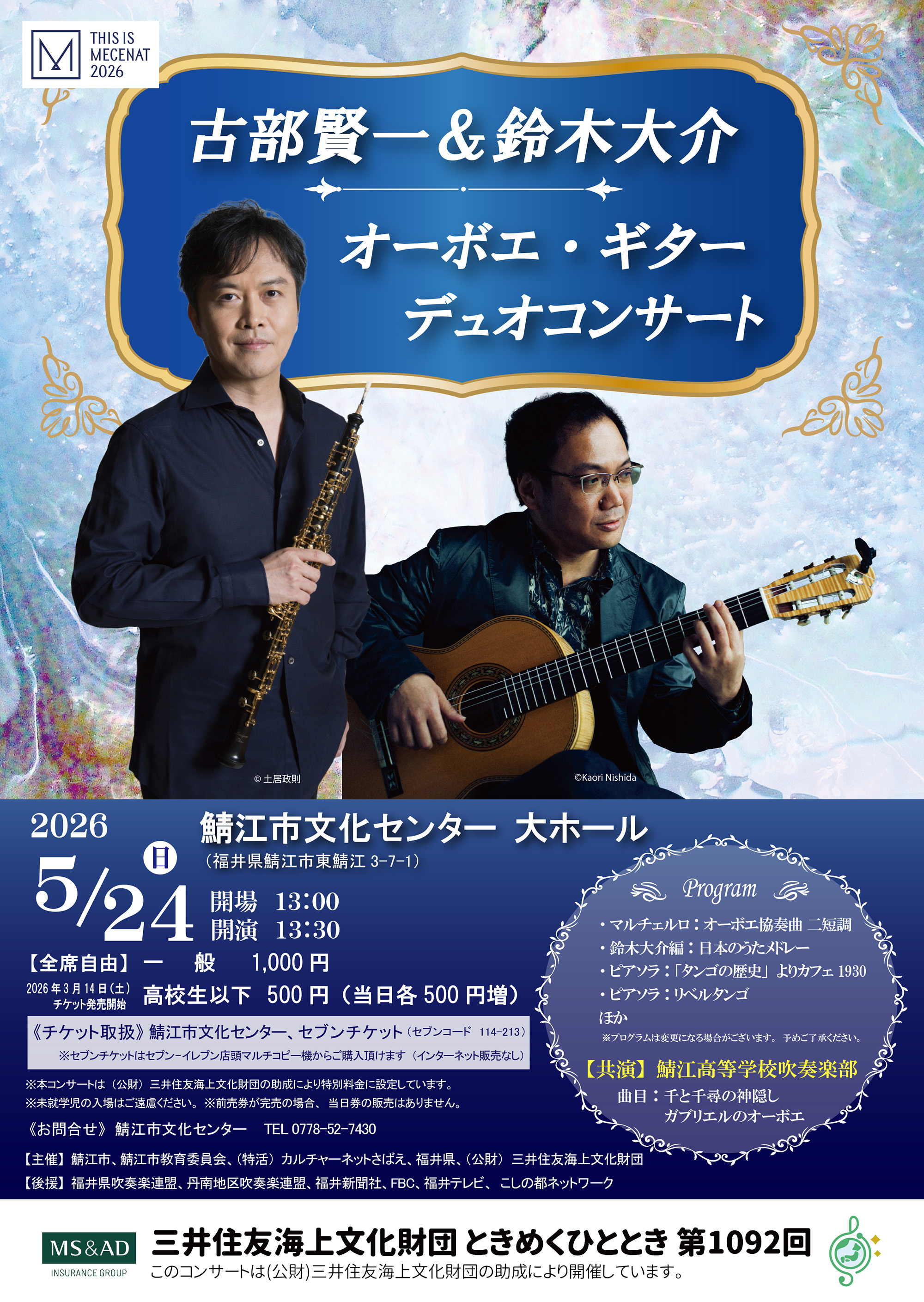 ※本コンサートは(公財)三井住友海上文化財団の助成により特別料金に設定しています。